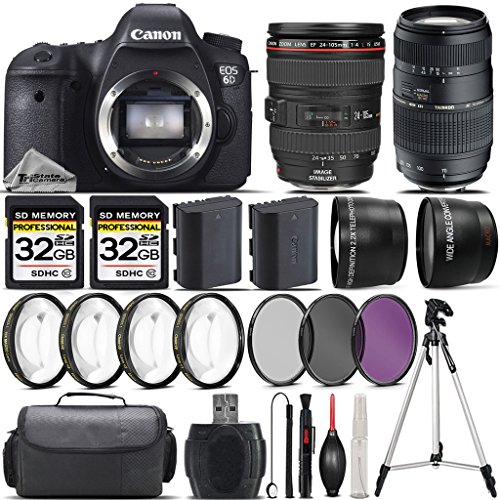 Canon EOS 6D DSLR Camera + Canon 24-105mm IS USM Lens + Tamron 70-300mm Di LD Macro Lens + 0.43X Wide Angle Lens + 2.2x Telephoto Lens + 64GB Storage + 4PC Macro Kit - International Version