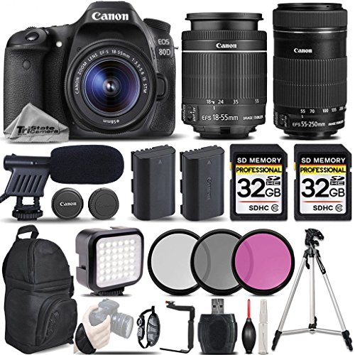 Canon EOS 80D Wi-Fi Full HD 1080P Digital SLR Camera + Canon 18-55mm IS STM Lens + Canon 55-250mm IS STM Lens + Shotgun Mic + LED KIT. All Original Accessories Included - International Version is one of the Best DSLR Camera to Buy in the marketplace. This Finest merchandise brings to you to suit your demand.