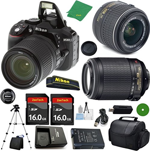 Nikon D5300 - International; Version (No Warranty), 18-55mm f/3.5-5.6 DX VR, Nikon 55-200mm f4-5.6G VR, 2pcs 16GB Memory, Camera Case