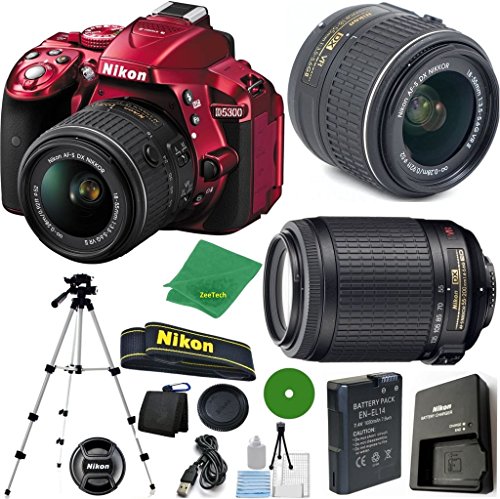 Nikon D5300 Red - International Version (No Warranty), 18-55mm f/3.5-5.6 DX VR, Nikon 55-200mm f4-5.6G VR, Tripod, 6pc Cleaning Set is one of the Best DSLR Camera Deals at the marketplace. This Top Deal goods prepares for you to realize your wish.