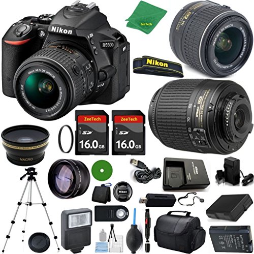 Nikon D5500 - International Version (No Warranty), 18-55mm f/3.5-5.6 DX VR, Nikon 55-200mm f4-5.6G ED DX, 2pcs 16GB Memory, Case, Wide Angle, Telephoto, Battery, Charger is one of the DSLR Camera on Sale in the market. This Most Popular product provides for you to answer your wish.