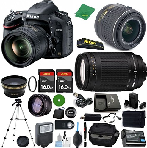 Nikon D610 - International Version (No Warranty), 18-55mm f/3.5-5.6 DX VR, Nikon 70-300mm f/4-5.6G, 2pcs 16GB Memory, Case, Wide Angle, Telephoto, Flash, Battery, Charger