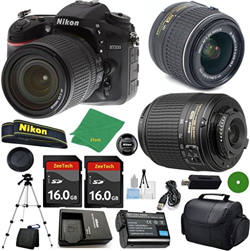 ZeeTech Ultimate Bundle for D7200 DSLR Body, 18-55mm VR Lens, 55-200mm f4-5.6G ED Auto Focus-S DX Nikkor, 2pcs 16GB ZeeTech Memory, Camera Case is one of the DSLR Camera on Sale in the market. This Perfect goods delivers to you to please your demand.